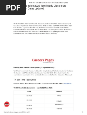 Tn 8th Time Table 2020 Tamil Nadu Class 8 Std Public Exam Dates