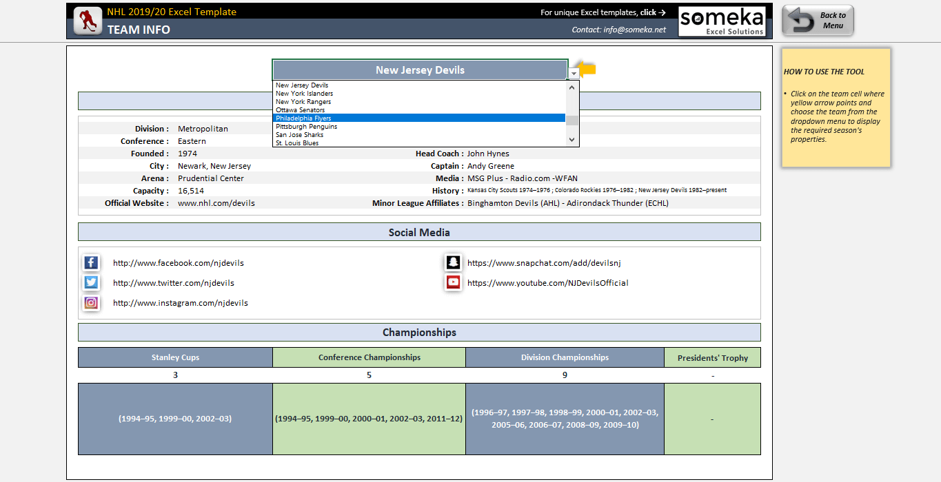 Nhl 2019 2020 Excel Template Nhl Schedule Standings Playoffs 2019