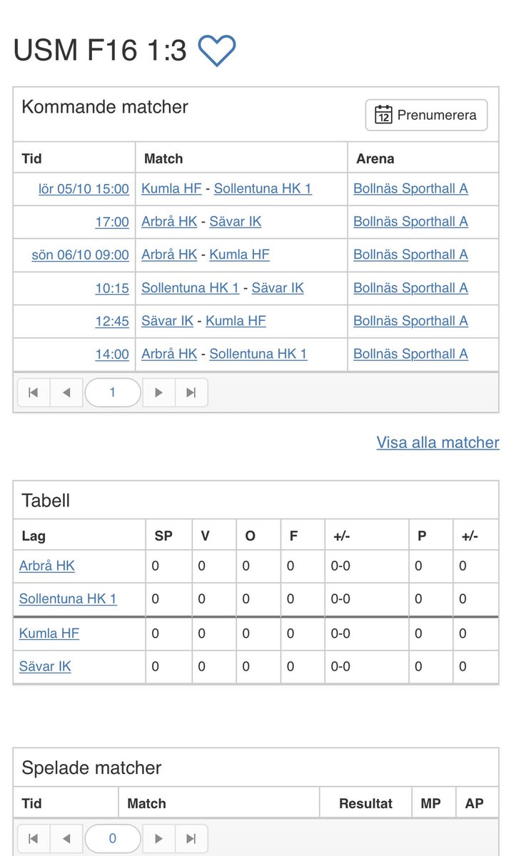 Tabell Usm Handboll